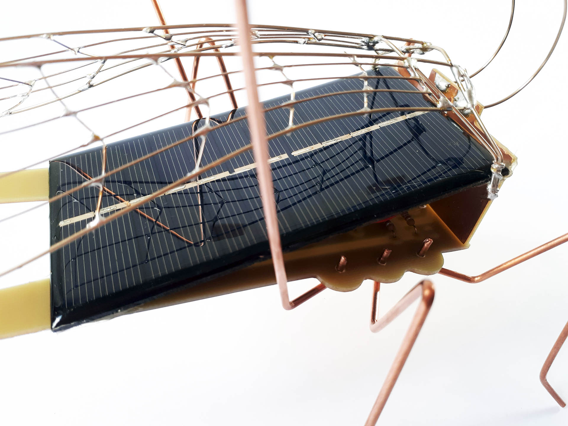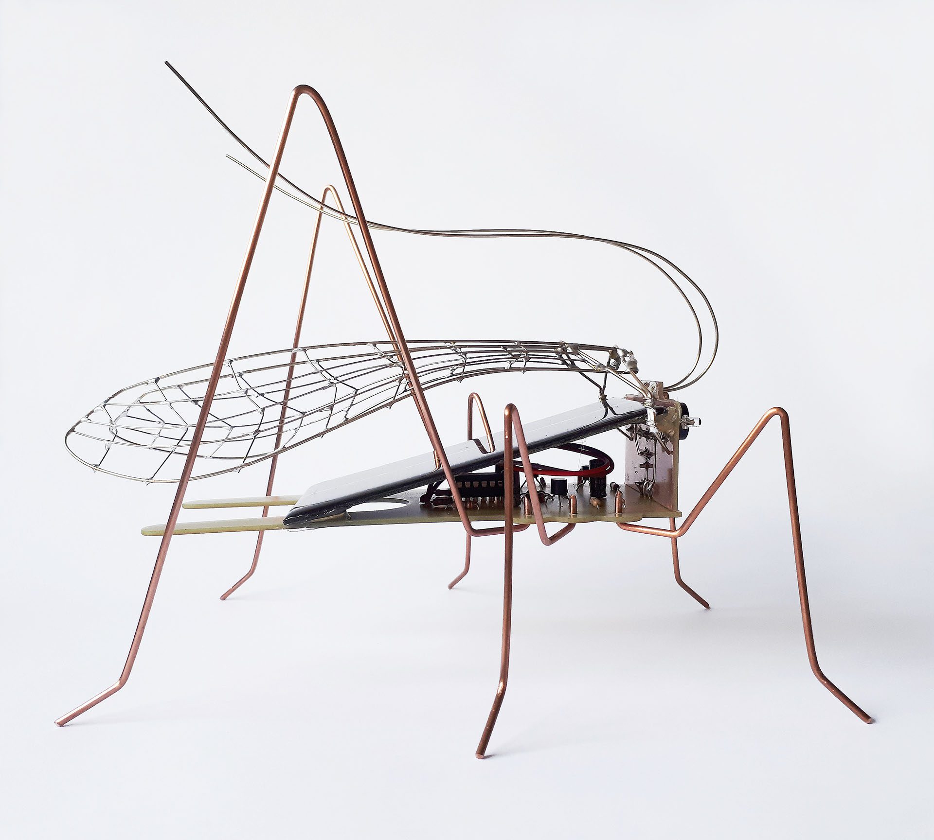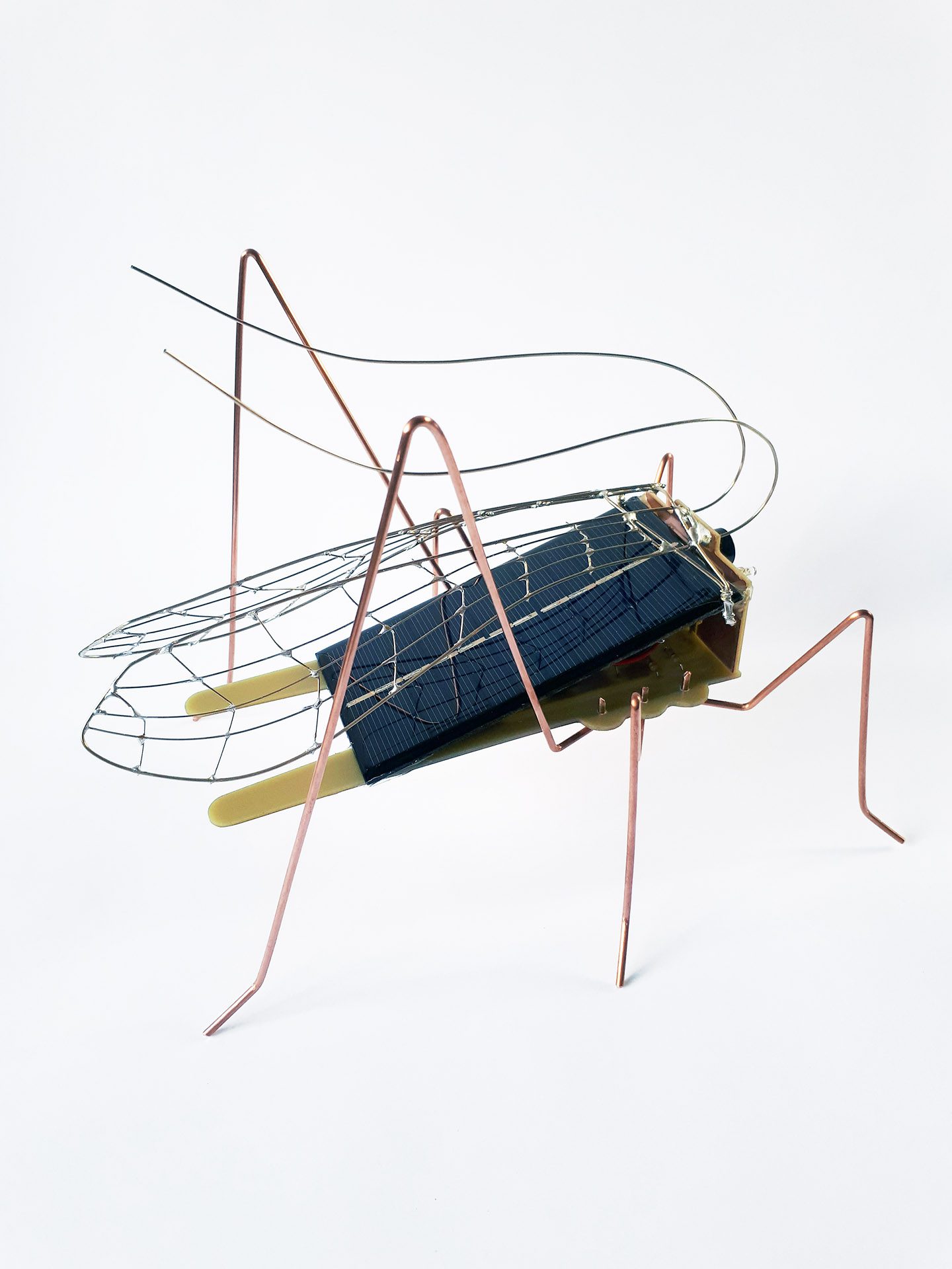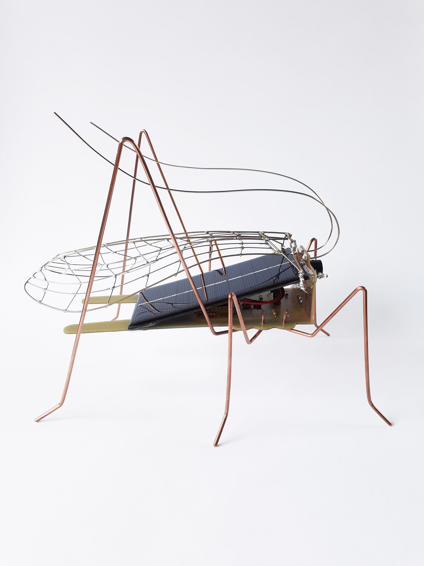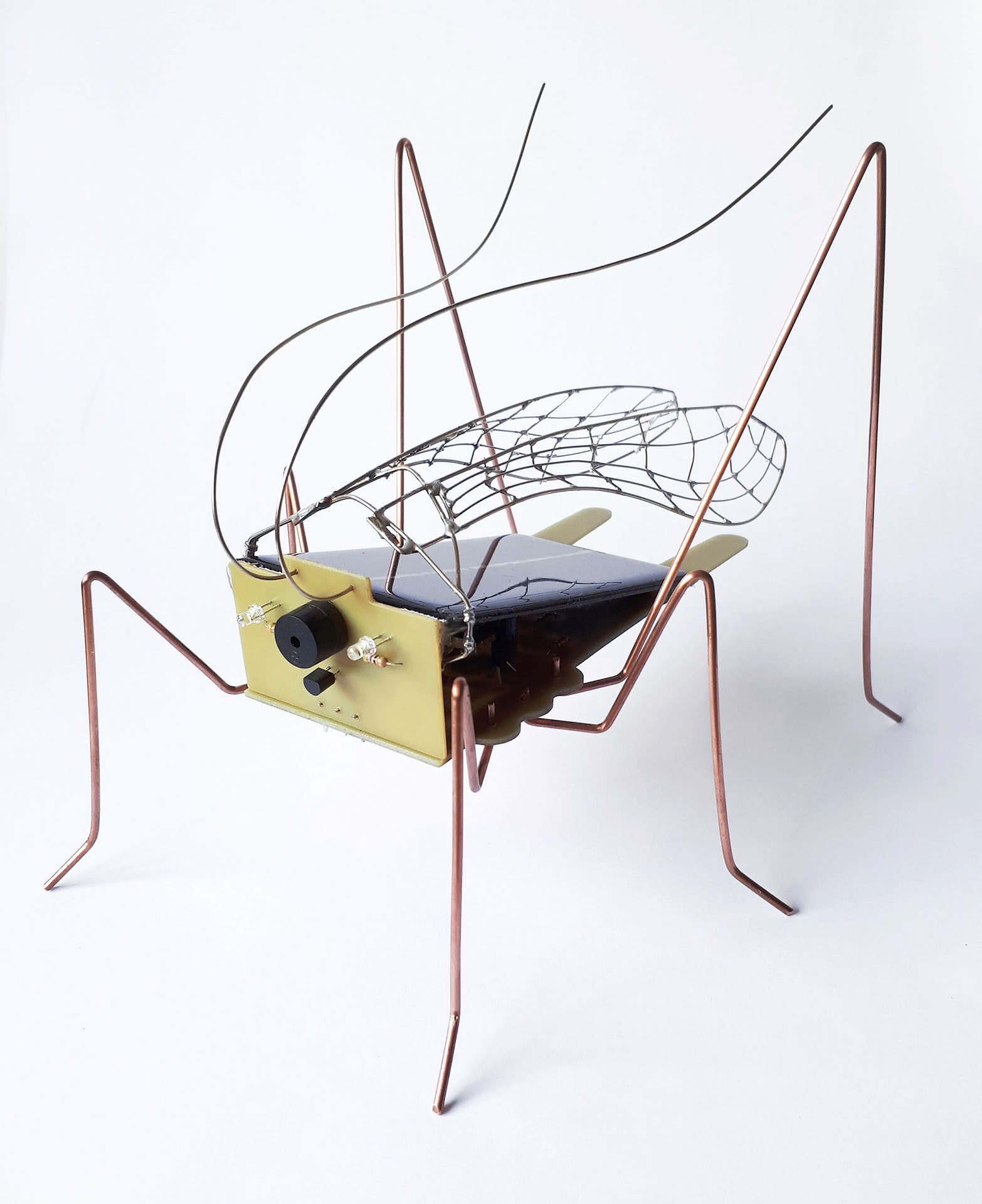 Possui um circuito eletrônico que produz um som semelhante ao produzido por um grilo na natureza. O artista analisou o som de um grilo visualmente a partir da forma de onda. Com base nos períodos de tempo foi projetado um circuito eletrônico que simula o som de um grilo. Vários Grilos juntos produzem o efeito de um ambiente sonoro povoado por muitos grilos. A escultura é alimentada por energia luminosa solar ou artificial.